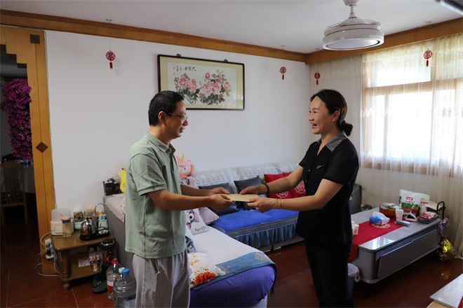 在公司黨總支紀檢委員、工會主席孫婷同志的帶領下,慰問小組深入困難職工家中,與他們面對面交流,詳細了解家庭生活、健康狀況等情況,認真傾聽他們的實際需求和困難,鼓勵他們堅定信心、樂觀生活。同時,為困難職工家庭送上了月餅、米、面、油等節(jié)日慰問品及慰問金,把公司的關(guān)愛送到職工心坎上。一句句暖心話語,一份份沉甸甸的慰問品,傳遞著豐達公司“以人為本”的公司溫度,也增強了職工對公司的認同感和歸屬感。